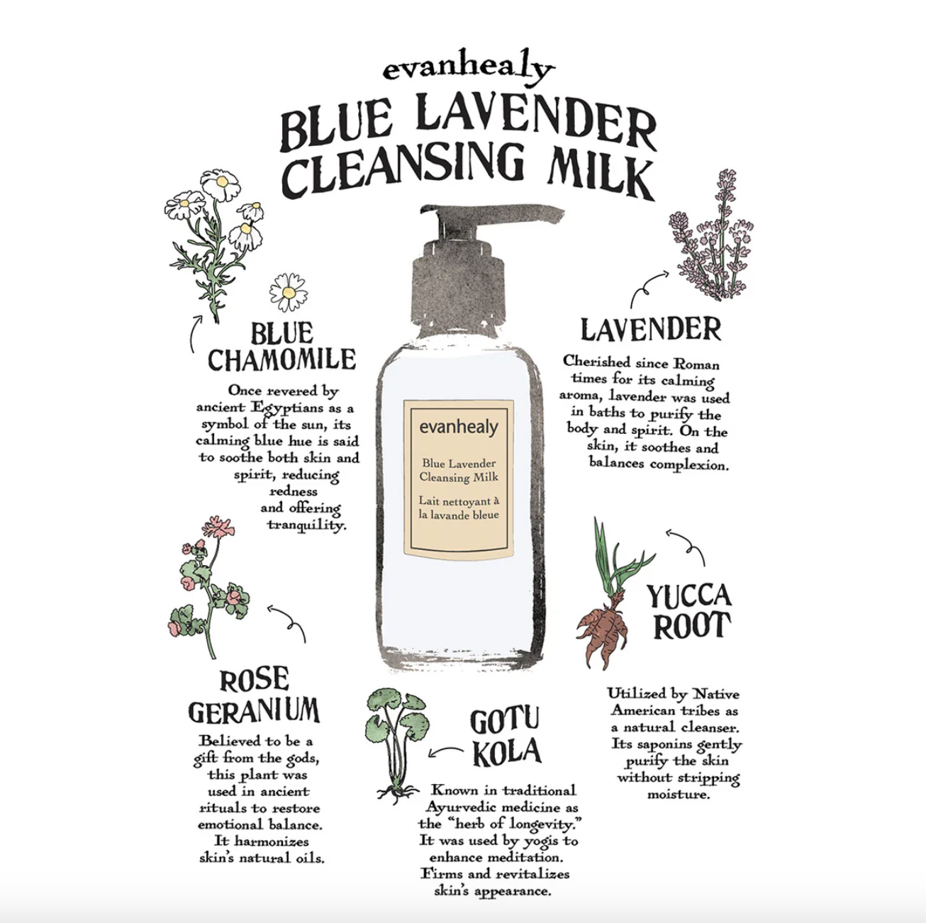 Water (Aqua), Rose Geranium (Pelargonium capitatum) Hydrosol*, Kaolin, Aloe (Aloe barbadensis) Leaf Juice*, Decyl Glucoside, Coconut (Cocos nucifera) Oil*, Shea (Butyrospermum parkii) Butter*, Sodium Lauroyl Lactylate, Glycerin, Sodium Stearoyl Lactylate, Sunflower (Helianthus annuus) Seed Oil*, Yucca Schidigera Root Extract, Honeysuckle (Lonicera caprifolium) Flower Extract, Honeysuckle (Lonicera japonica) Flower Extract, Olive (Olea europaea) Oil*, Calendula Officinalis Flower Extract, Xanthan Gum, Gota Kola (Centella asiatica) Extract, Hops (Humulus lupulus) Extract, Horse Chestnut (Aesculus hippocastanum) Extract, Lavender (Lavandula angustifolia) Flower Oil*, Blue Chamomile (Matricaria recutita) Flower Oil*, Vitamin E (Tocopherol), Flower Essences.